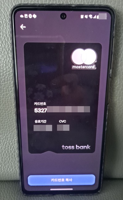 그러면 내가 사용하는 실물 카드 그림에 카드 번호, 유효기간, CVC 번호를 확인할 수 있을 것입니다. 이 화면은 보안상 캡처가 되지 않네요. ㅜ.ㅜ