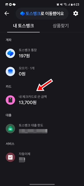 그러면 내 카드 세부 내용 화면으로 이동 합니다.
