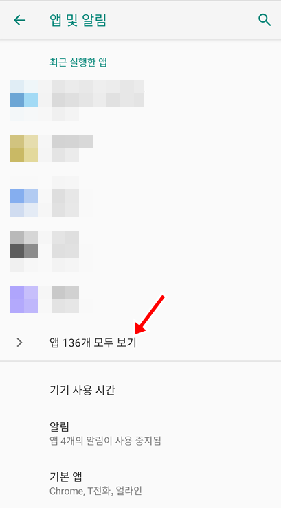 ▼ 앱 및 알림에서 모두 보기를 선택 합니다.