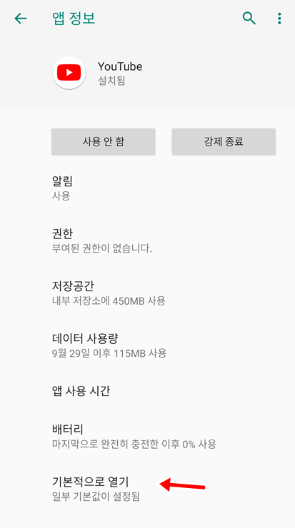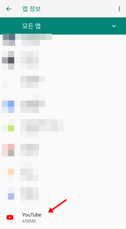▼ 모든 앱 정보에서 제일 하단으로 내려 유튜브를 선택 합니다.
