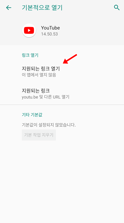 ▼ 기본적으로 열기 설정에서 첫번째 설정인 지원되는 링크 열기 항목을 선택 합니다.