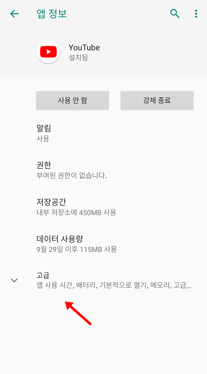 ▼ 유튜브 앱 설정에서 고급을 선택 합니다.