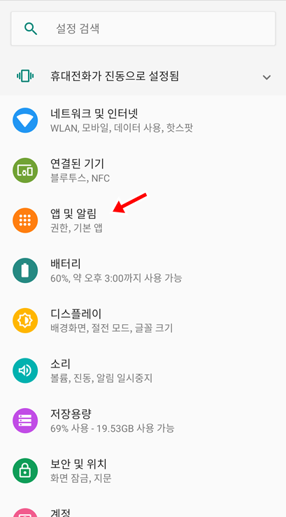 ▼ 방법은 스마트폰 설정에서 앱 및 알림 을 선택 합니다.