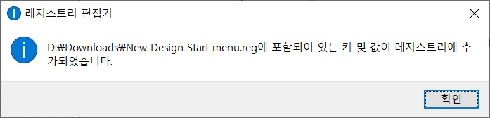4. 저장된 .reg 파일을 더블 클릭 하여 레지스트리를 병합 합니다.