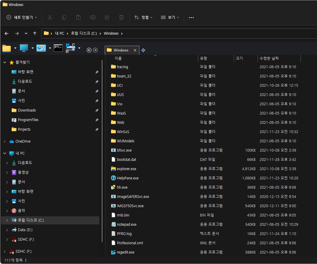윈도우11에서는 이제까지 계속 제공하던 여러 가지 기능을 없앤게 좀 있습니다. 대표적인게 작업표시줄의 여러 가지 설정 이겠죠. 그래서 윈도우 탐색기 간격 줄이기 기능도 없을줄 알았는데 다행이도 있더군요.