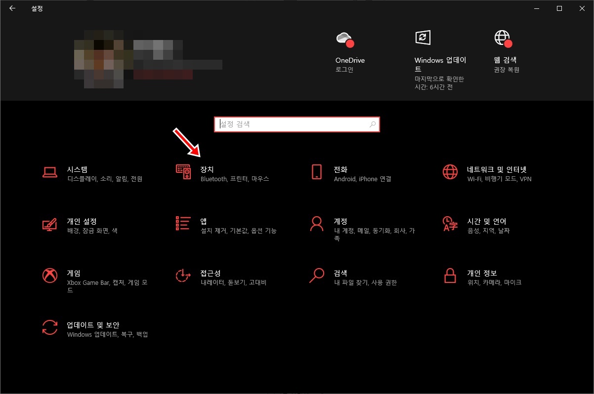 이렇게 설정 화면이 뜨면 [장치] 항목을 클릭 합니다.